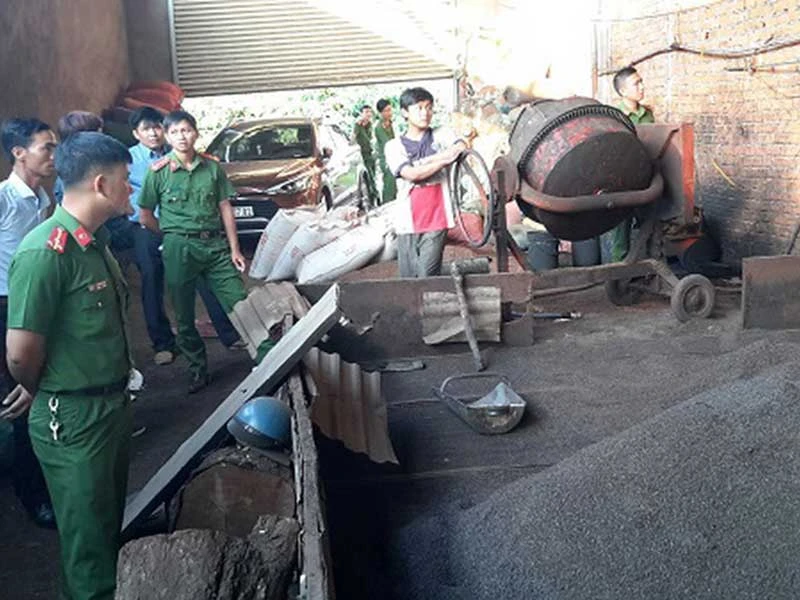 Tại thời điểm kiểm tra, cơ quan chức năng ghi nhận cơ sở trộn vỏ cà phê với than pin và đá nhuyễn có kích thước 0,5-1 mm rồi cho vào máy bê tông quay đều. Sau khi hỗn hợp nói trên thành màu đen, cơ sở cho vô máy sấy khô rồi đóng thành bao khoảng 50 kg. Tổng cộng trong kho khoảng 20 tấn sản phẩm nói trên. “Cơ quan chức năng còn phát hiện tại cơ sở có khoảng 35 kg vỏ pin. Chưa hết, sau khi kiểm tra khu vực chứa chất thải, cơ quan chức năng phát hiện thêm 192 kg vỏ pin nữa” - ông Chương cho hay.