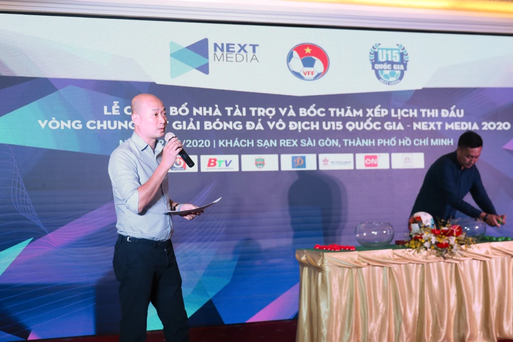 Trưởng Phòng Tổ chức-thi đấu VFF, Trần Huy Đức điều hành lễ bốc thăm. Ảnh: HOÀNG TÙNG