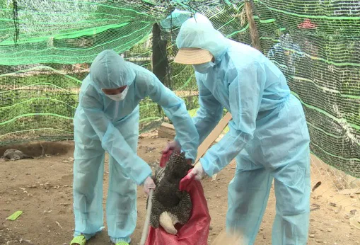 Lực lượng thú y tiêu hủy gia cầm nhiễm cúm A/H5N6. Ảnh: CTV