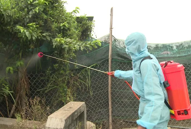 Phun thuốc khử trùng khu vực nhiễm cúm A/H5N6. Ảnh: CTV