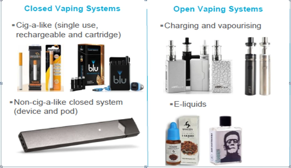 Các loại thuốc lá điện tử với kiểu dáng và thiết bị khác nhau. Ảnh do bà Tan Yen Lien cung cấp