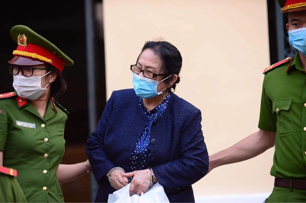 Bà Dương Thị Bạch Diệp được dẫn giải về trại giam sau khi toà tạm nghỉ. Ảnh: H.YẾN