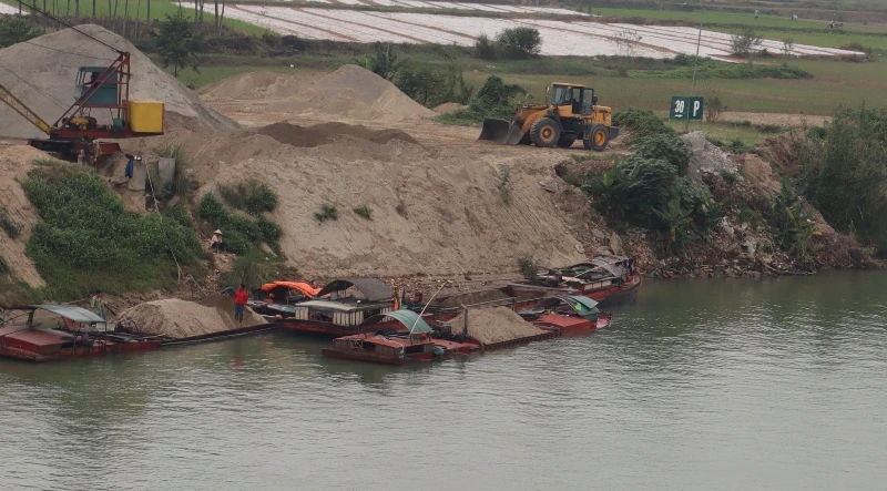 Cạnh bến cát rác thải đổ xuống bờ sông Lam.