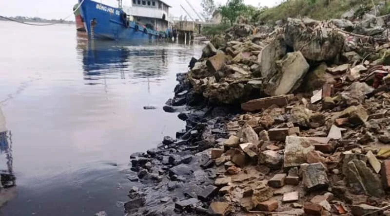 Vết dầu loang ở hạ nguồn sông Lam (đoạn chảy qua xã Xuân Giang, huyện Nghi Xuân, Hà Tĩnh).