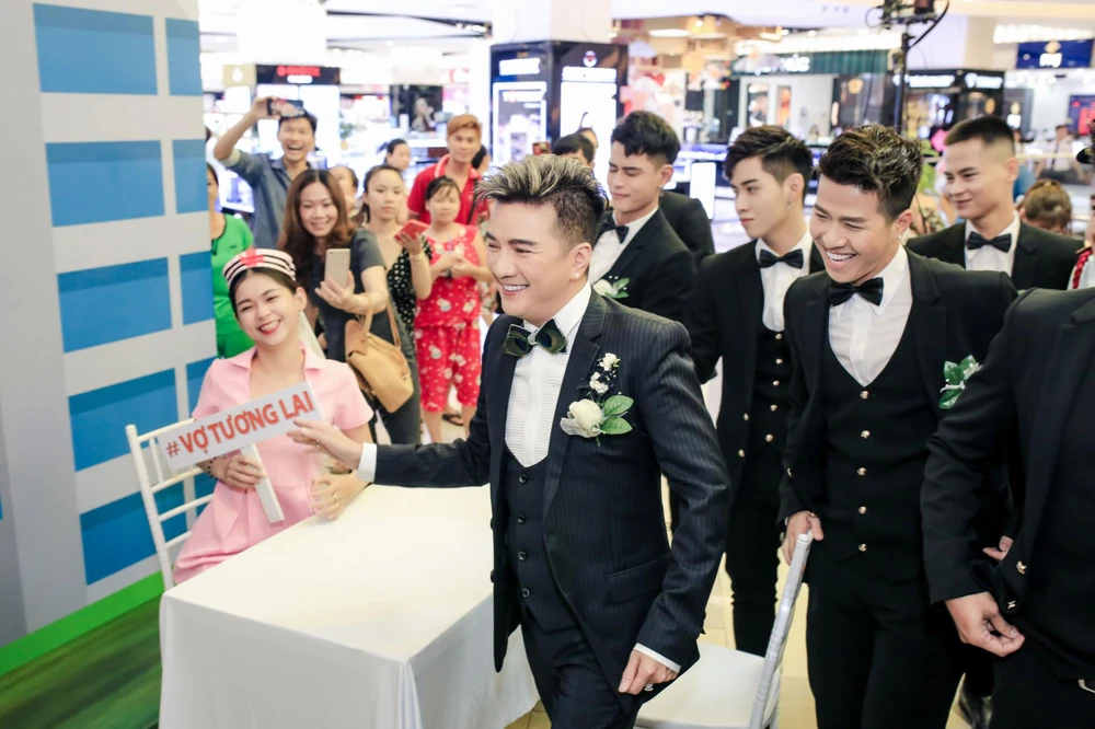 Mở màn cho buổi họp báo, ca sĩ này lần nữa gây sốc khi xuất hiện cùng dàn cô dâu đủ mọi lứa tuổi, tiến từ cổng trung tâm thương mại vào tận sân khấu. Đồng thời, nam ca sĩ cũng “cháy” hết mình khi hát live ca khúc mới Vợ tương lai đầy vui tươi, hào hứng. Có thể nói, Mr. Đàm là một trong số ít các nghệ sĩ luôn sáng tạo, đổi mới, chưa bao giờ ngại khó và sẵn sàng “quẩy hết cỡ” để chiều fan. Màn trình diễn ấn tượng, trẻ trung.