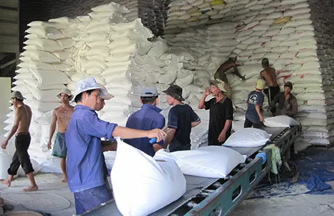 Đóng bao gạo để xuất khẩu tại một doanh nghiệp ở miền Tây. Ảnh: QH