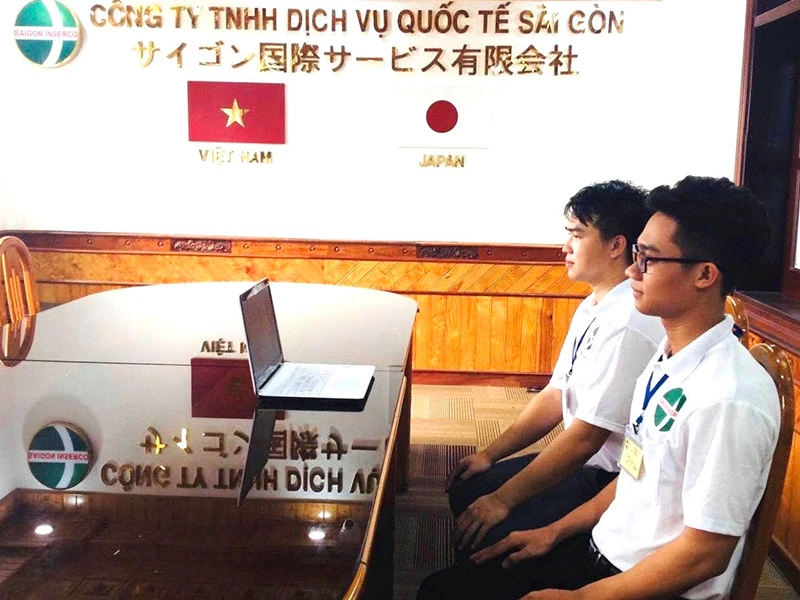 Một công ty Nhật Bản phỏng vấn ứng viên trực tuyến để đưa sang Nhật làm việc. Ảnh: P.ĐIỀN