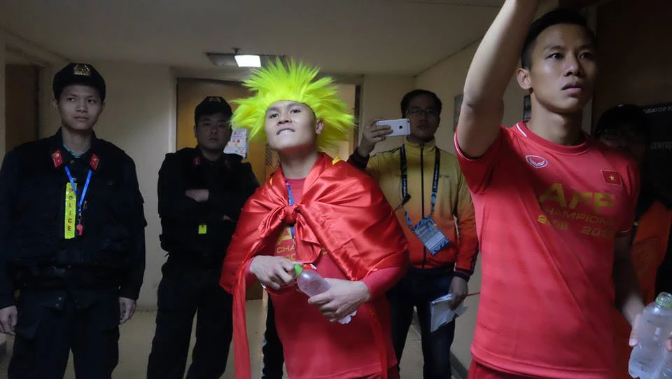Tuổi 21 tinh nghịch của Quang Hải sau trận chung kết lượt về. Ảnh: CCT