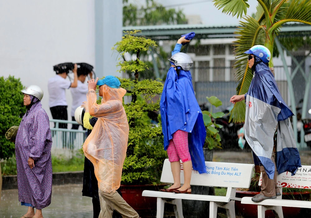 Tại điểm thi THCS Đống Đa (quận Bình Thạnh, TP.HCM), mặc kệ cơn mưa lớn, nhiều ông bố, bà mẹ vẫn đứng dầm dưới trời mưa chờ con ra khỏi phòng thi trong tâm trạng háo hức.
