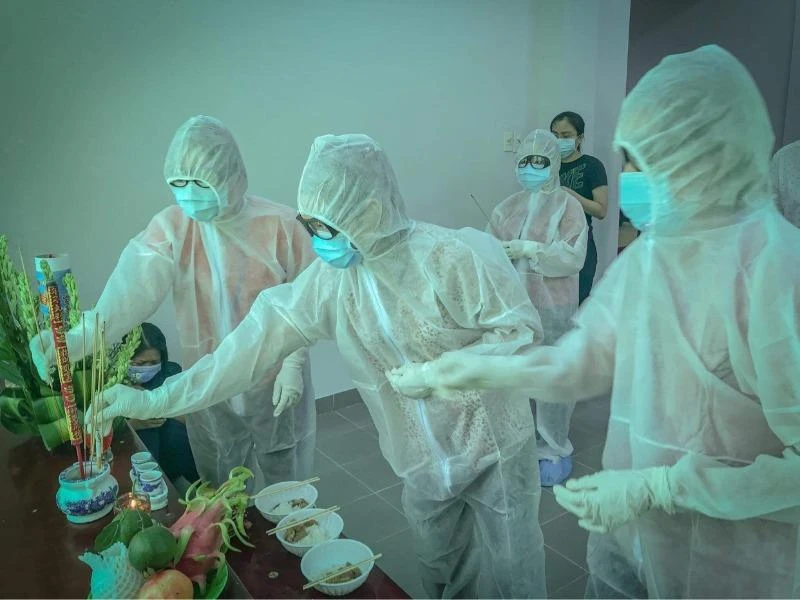 Đồng thời, Ban điều hành đã chọn một phòng riêng để lập một bàn thờ tạm cho chị Ngà chịu tang cha. Mọi người trong khu cách ly cùng nhau để thắp nhang và chia sẻ nỗi đau mất người thân với chị.