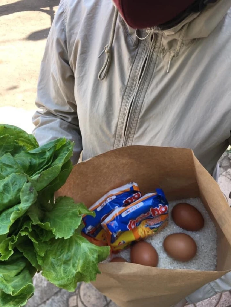 Mỗi người được nhận 2 kg gạo, năm quả trứng, mì tôm và rau.