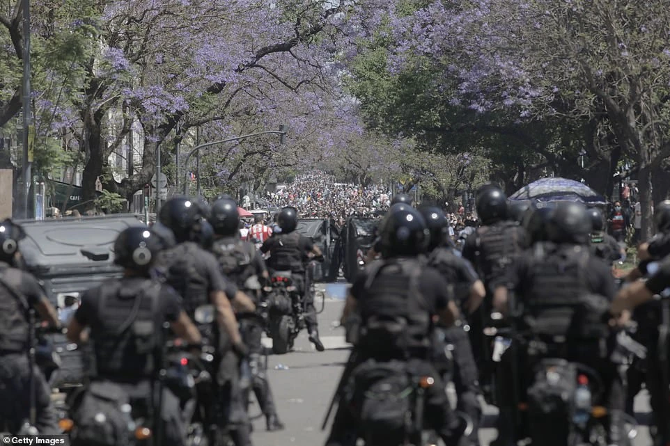 Cảnh sát chống bạo động chuẩn bị sẵn sàng bảo vệ buổi lễ đưa tang của Maradona. ẢNH: GETTY
