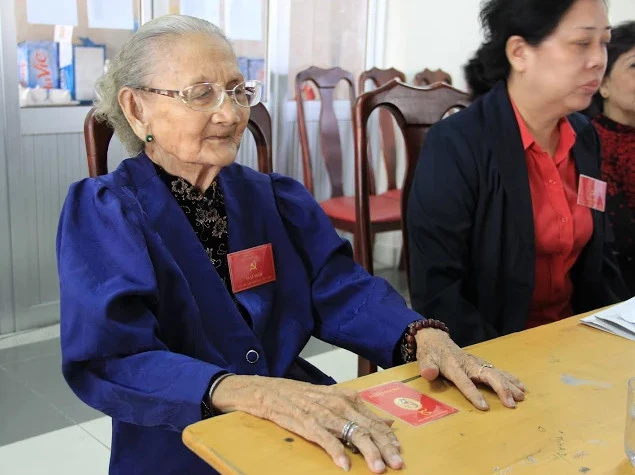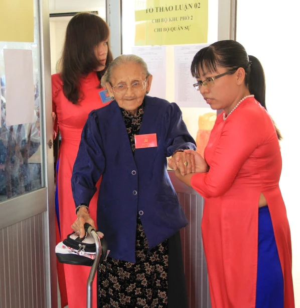 Phóng viên đã kịp ghi nhận hình ảnh của cụ khi tham gia đại hội Đảng bộ Phường 12 lần thứ XIII nhiệm kỳ 2015-2020 sáng nay.