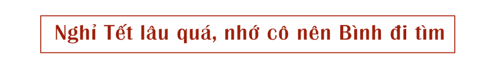 Té ra, Bình bỏ nhà đi thăm cô Thoa. Nghỉ Tết tận hai tuần, nhớ cô giáo quá nên Bình đi tìm. Nhưng nhà cô ở Gò Vấp, mà chẳng hiểu sao Bình đi lạc tận Củ Chi, đi xa quá Bình quên luôn đường về nhà.