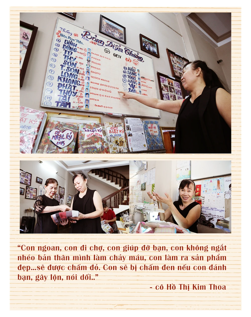 Tại cơ sở, mỗi em lại có sở thích, thói quen, và cả những nỗi sợ hãi riêng. “Long thích hip hop, Tú, Sang thì thích nhạc bolero. Bình, Dũng, Phát thì thích nhạc thiếu nhi. Sơn thích Trái tim mùa đông, Tóc em đuôi gà. Nên khi mở nhạc, các cô cũng mở theo thứ tự tên trên bảng điểm thưởng, theo sở thích của từng bạn. Dạy các em, nhiều khi cũng phải dạy mẹo”, cô Thoa cười.