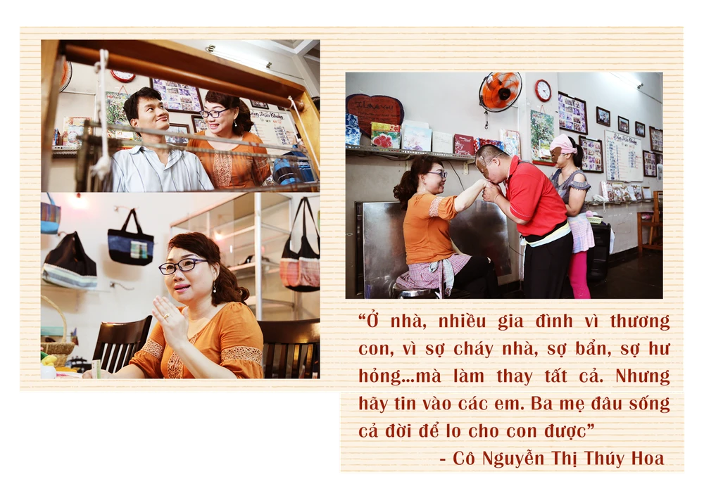“Chúng tôi dạy các em cách bật tắt bếp gas, cách nấu mì, cách pha nước chanh, cách cầm đũa, cách nói lời cảm ơn, xin lỗi, dạy các em ăn xong tự đưa bát đi rửa, dạy các em nghề dệt vải… Ở nhà, nhiều gia đình vì thương con, vì sợ cháy nhà, sợ bẩn, sợ hư hỏng…mà làm thay tất cả. Nhưng hãy tin vào các em. Ba mẹ đâu sống cả đời để lo cho con được”, Cô Hoa, quản lý cơ sở Bảo trợ xã hội Trái tim chia sẻ.