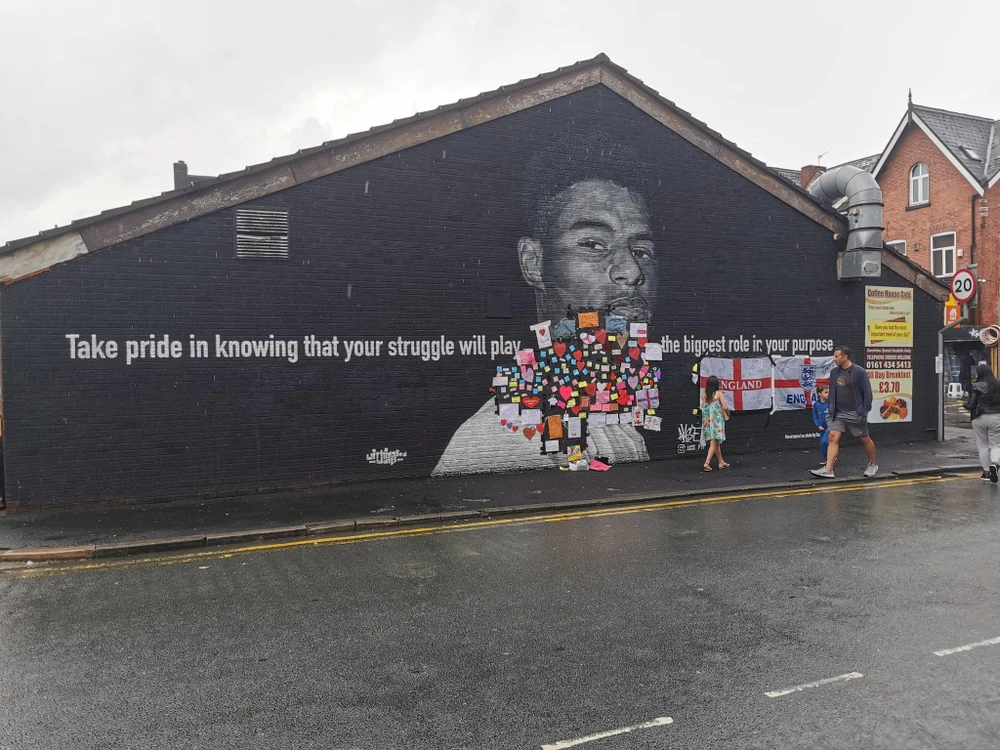 Rất cảm động, rất đông người dân địa phương và giới hâm mộ từ các vùng xa hơn đã đổ xô đến các tác phẩm nghệ thuật bị phá hoại ở Withington để bày tỏ tình yêu mến của họ với Rashford. Họ bao phủ bức tường bằng các hình vẽ và những lời chúc phúc, ca ngợi anh là “con người tuyệt vời” về nhiều việc làm của anh giúp đỡ cộng đồng