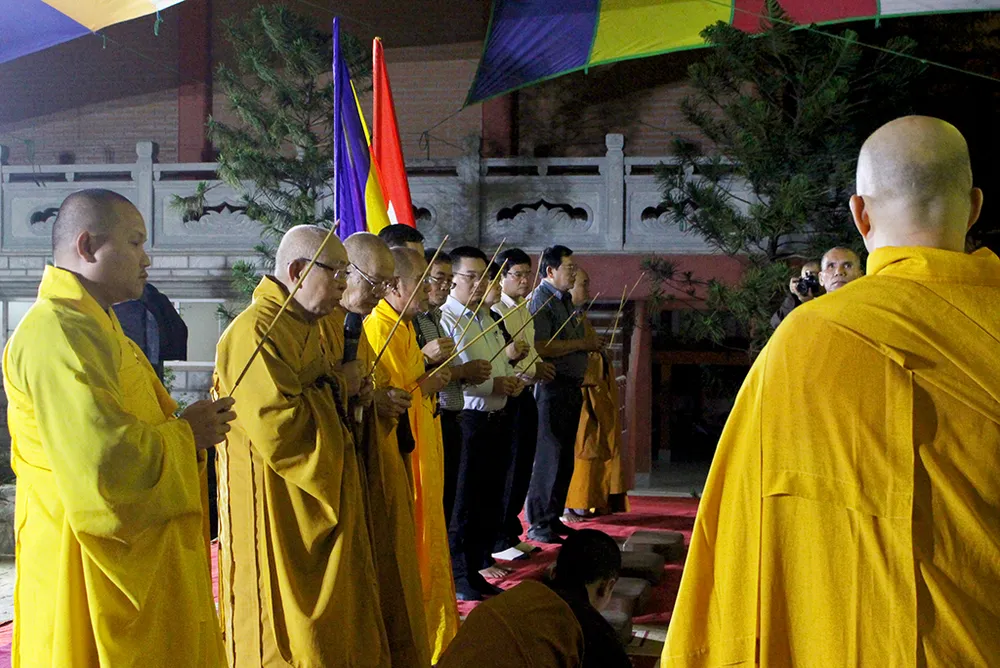 Lãnh đạo chính quyền địa phương cùng các hòa thượng thắp hương cầu siêu cho các nạn nhân. Ảnh: LÊ THOA