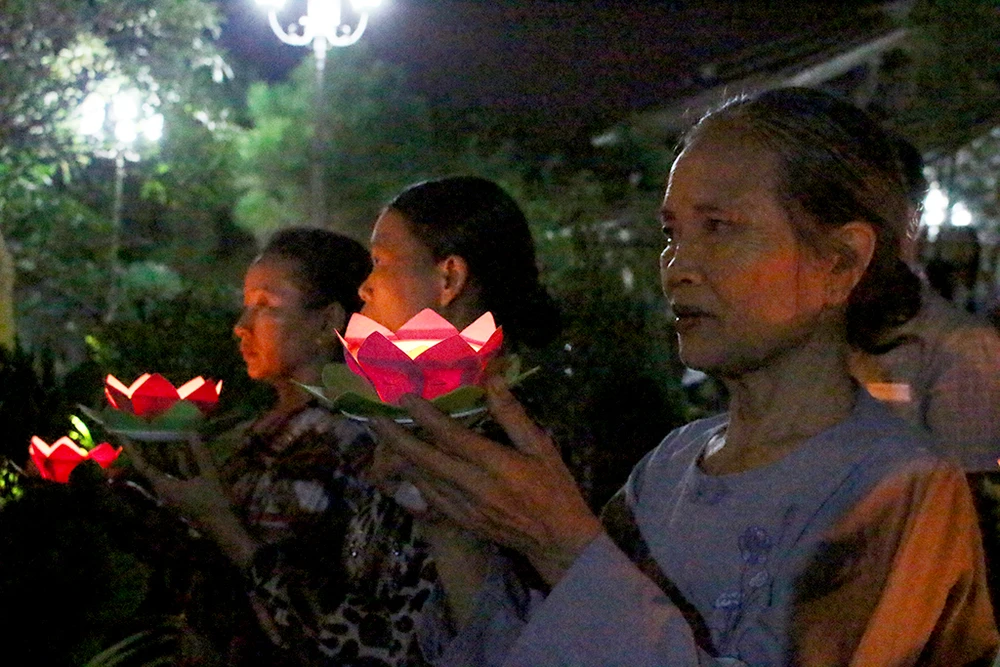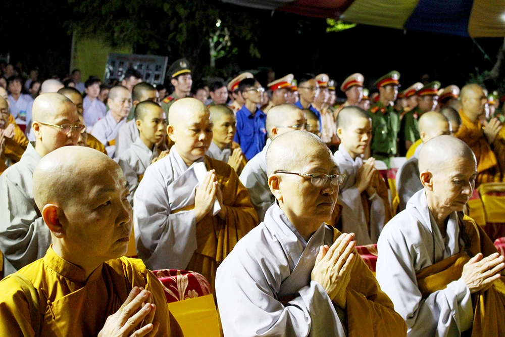 Buổi lễ có sự tham dự của nhiều Phật tử và cả cán bộ địa phương. Ảnh: LÊ THOA