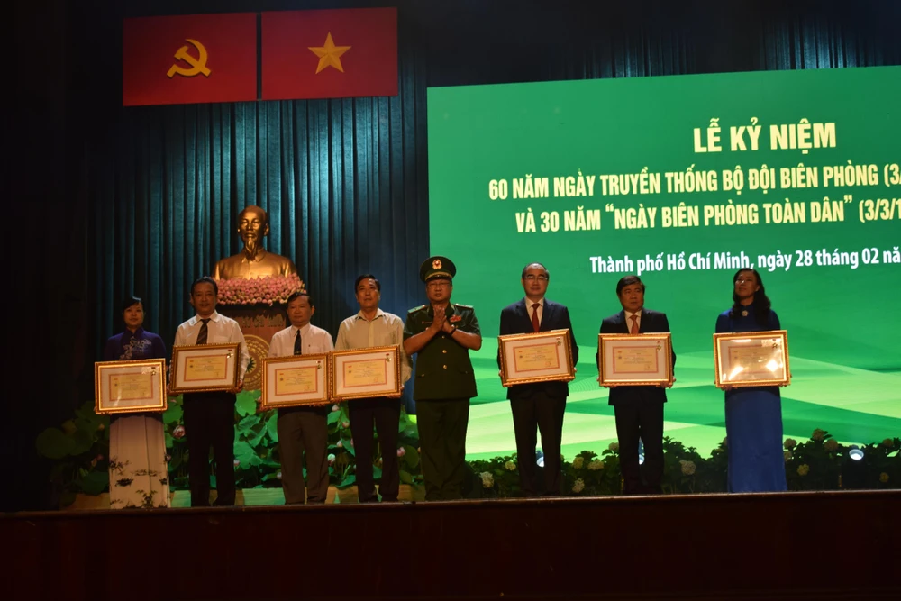 Trong buổi lễ, Ủy ban MTTQ Việt Nam TPHCM nhận được bằng khen của Thủ tướng Chính phủ vì có thành tích trong tổ chức thực hiện ngày biên phòng toàn dân; ông Nguyễn Văn Minh, Phó Bí thư Thường trực Đảng ủy Sở LĐ-TB-XH TP được nhận bằng khen của Bộ trưởng Bộ Quốc phòng.