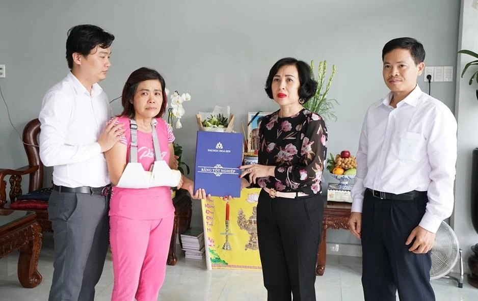 (PLO) – GS.TS. Mai Hồng Quỳ, Hiệu trưởng trường ĐH Hoa Sen đã đến tận nhà trao bằng cử nhân cho gia đình một sinh viên đã mất ở Bình Dương vì tai nạn giao thông.