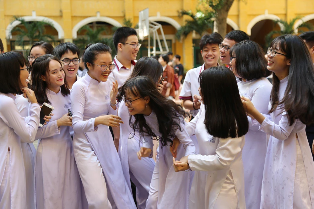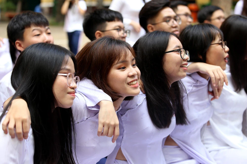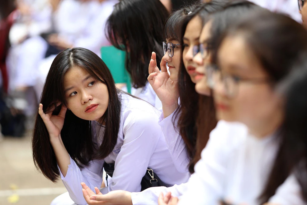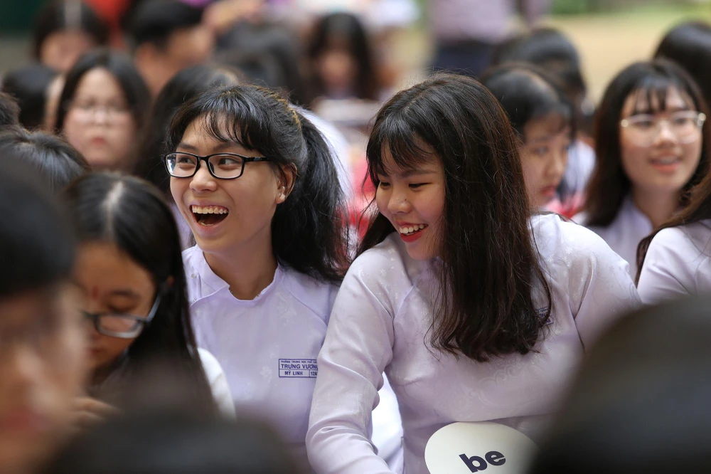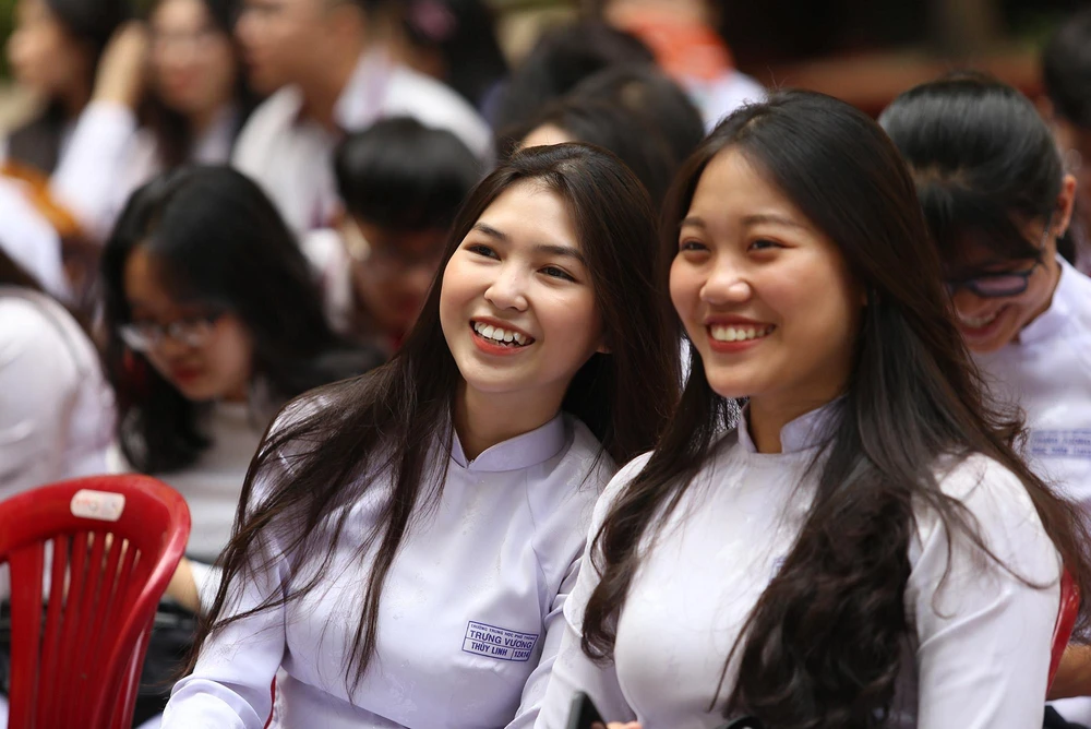 Nụ cười rạng rỡ của nữ sinh Trưng Vương trong buổi lễ.