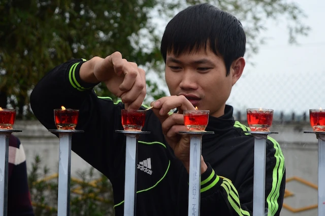 64 ngọn nến tượng trưng cho 64 liệt sĩ đã hy sinh trong trận hải chiến Gạc Ma. Ảnh: LÊ VĂN