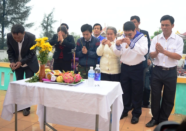 Sáng 14-3, đúng 28 năm sau ngày 64 chiến sĩ Hải quân Nhân dân Việt Nam anh dũng ngã xuống trong trận hải chiến Trường Sa với quân xâm lược Trung Quốc (14-3-1988 - 14-3-2016), những đồng đội của các anh đã về Nghĩa trang liệt sĩ phường Quảng Phúc (thị xã Ba Đồn, Quảng Bình) tổ chức tưởng niệm ngày mất của các anh.
