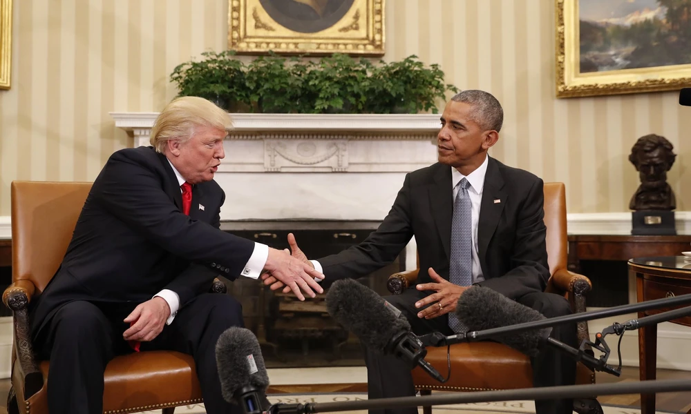Ông Donald Trump (trái) sẽ chính thức thay thế ông Barack Obama, trở thành tổng thống Mỹ đời thứ 45 sau lễ nhậm chức vào ngày 20-1-2017 (giờ Mỹ). Ảnh: AP