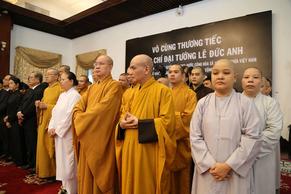 Đoàn tăng ni, phật tử đến viếng Đại tướng Lê Đức Anh. Ảnh: HOÀNG GIANG