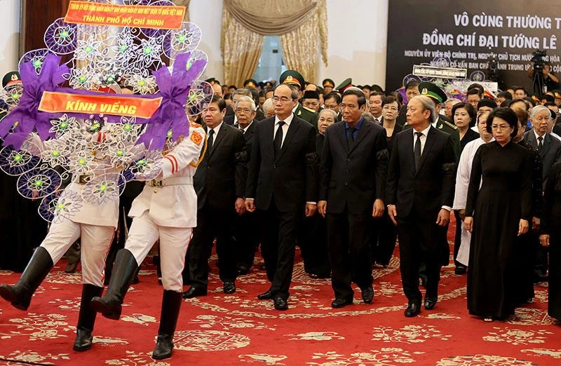 Bí thư Thành ủy Nguyễn Thiện Nhân dẫn đầu đoàn viếng Đại tướng Lê Đức Anh. Ảnh: HOÀNG GIANG