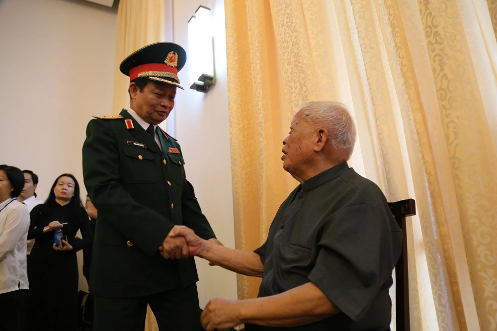 Trung tướng Lê Nam Phong (người ngồi ghế), nguyên Tư lệnh Sư đoàn bộ binh 7 (Quân đoàn 4) đến viếng. Ảnh: HOÀNG GIANG