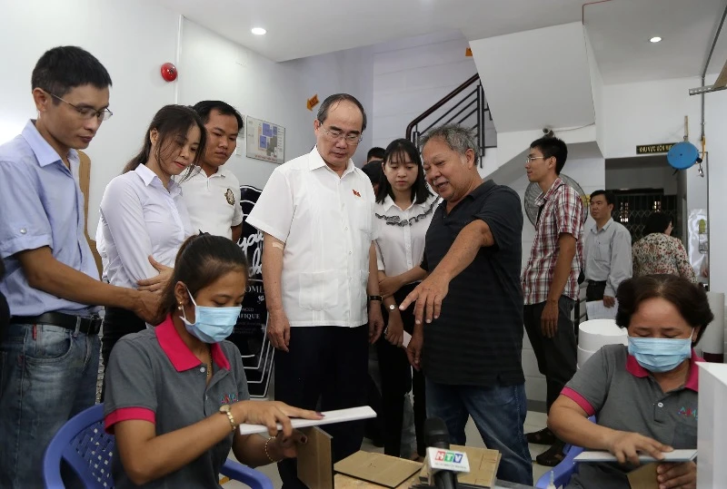 Tiếp đó, Bí thư Thành ủy Nguyễn Thiện Nhân cùng đoàn cũng đến thăm gia đình ông Lê Văn Tâm, ngụ phường Cát Lái. Đây là hộ dân di dời tại dự án Khu đô thị mới Thủ Thiêm đã tái định cư và phát triển mô hình kinh doanh tốt.