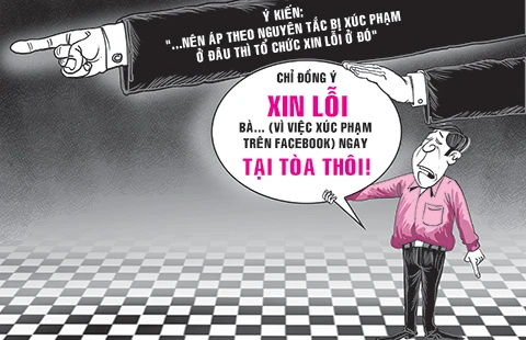 Đồng tình, LS Phạm Công Út (Đoàn LS TP.HCM, người tham gia cộng đồng Facebook thường xuyên) cũng nói trường hợp này luật chưa quy định phải xin lỗi ở đâu. Vì thế, HĐXX có thể sáng tạo và linh động trong cách giải quyết. Tuy nhiên, bản án tuyên “đăng tin công khai” nhưng không nói rõ công khai như thế nào sẽ gây khó khăn cho việc THA. Công khai ở địa phương người xin lỗi, ở nơi người bị xúc phạm, trên báo hay công khai ở đâu? Liệu nơi “đăng tin công khai ấy” người tham gia cộng đồng Facebook (nơi từng đăng thông tin xúc phạm) có đọc được hay không?