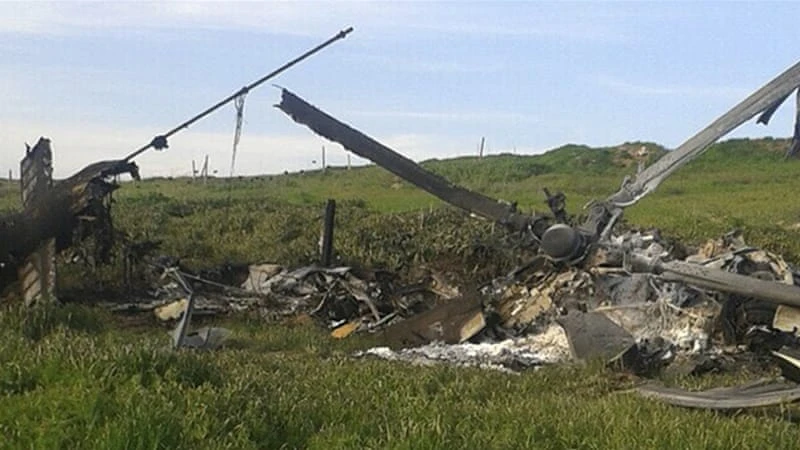 Một trực thăng Azerbaijan bị bắn hạ tại Nagorno-Karabakh trong "Chiến tranh bốn ngày" năm 2016. Ảnh: AP