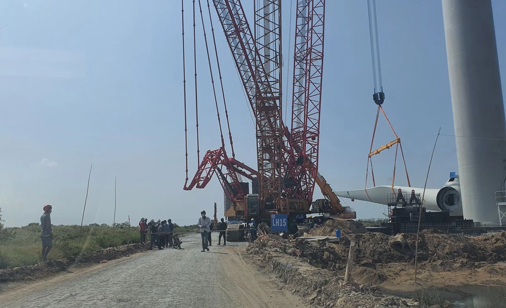 Một công trường điện gió ở thị xã Vĩnh Châu, Sóc Trăng hôm 19-1. Ảnh: TV