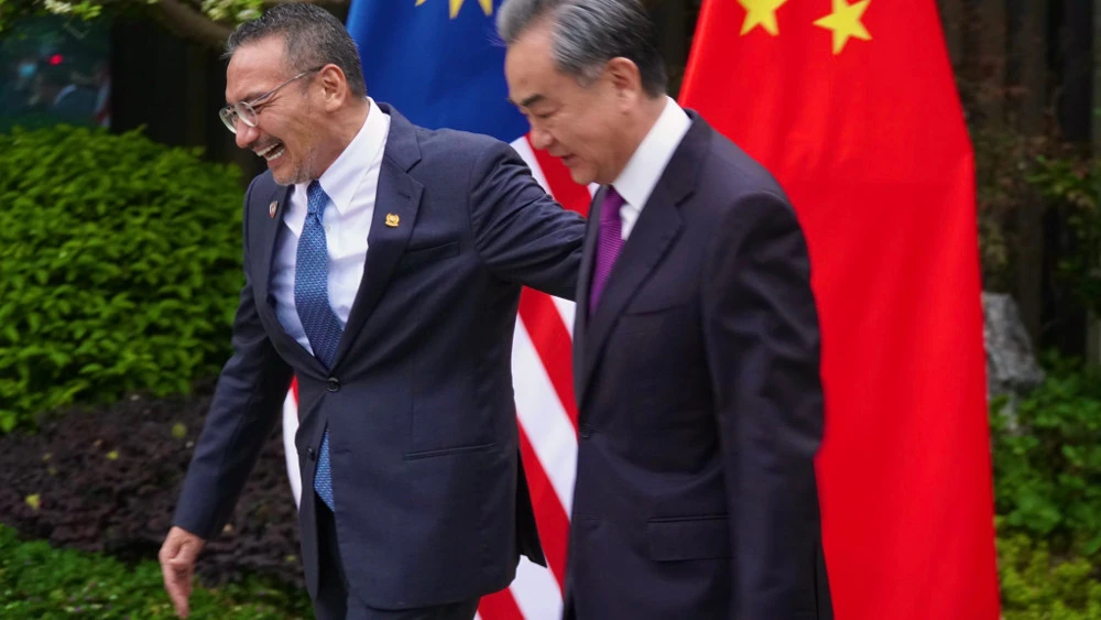 Bộ trưởng Quốc phòng Malaysia Hishammuddin Hussein (trái) và Bộ trưởng Ngoại giao Trung Quốc Vương Nghị. Ảnh: @HISHAMMUDDINH2O / TWITTER