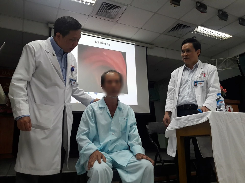 Trường hợp hy hữu này là của ông PHT, 52 tuổi, ngụ Bình Dương. Ông T. cho biết cách đây hơn 10 ngày, ông có ăn canh cá lóc. Trong lúc ăn thì bị hóc xương ở cổ, sau nhiều lần cố gắng lấy ra bằng phương pháp dân gian không thành công, ông đến khám tại BV ở Bình Dương và một số phòng khám. Dù ông có khai báo là hóc xương nhưng các bác sĩ đều không tìm ra, chỉ kê toa thuốc cho ông uống.