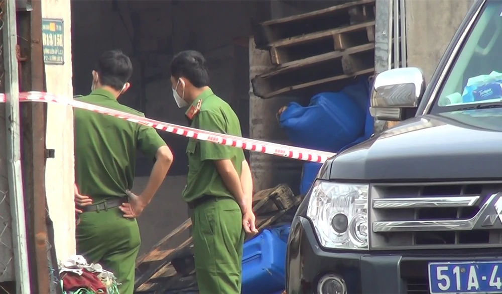 Ngày 5-10, Công an huyện Bình Chánh, TP.HCM vẫn đang phong tỏa hiện trường, khám nghiệm, điều tra vụ cháy tại xưởng hóa chất trên đường Liên Ấp 1-2-3, xã Vĩnh Lộc B , huyện Bình Chánh.