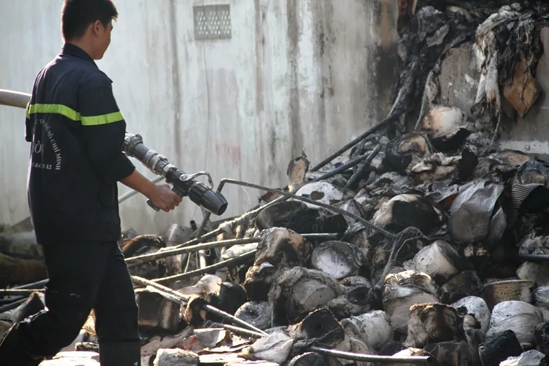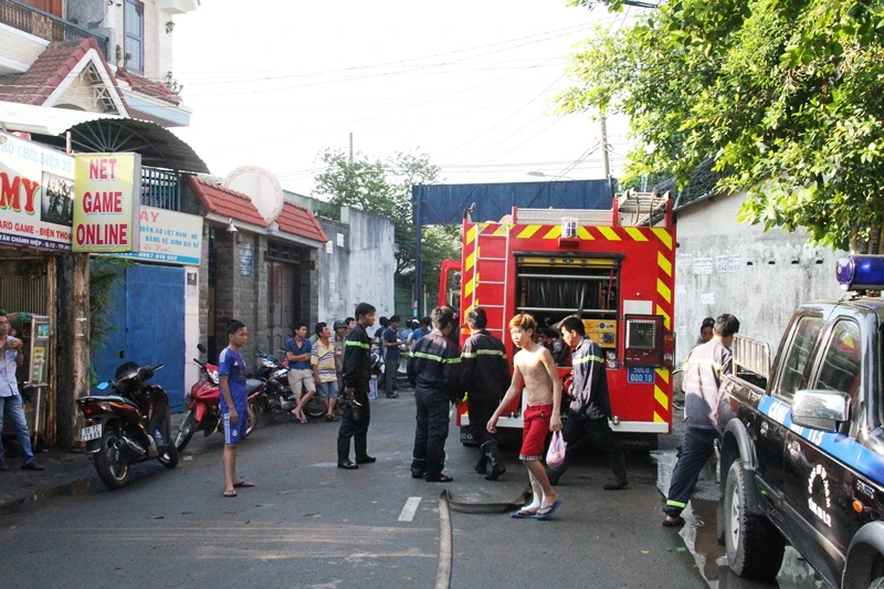 Lực lượng Cảnh sát PCCC quận 12 nhanh chóng có mặt dập tắt lửa.