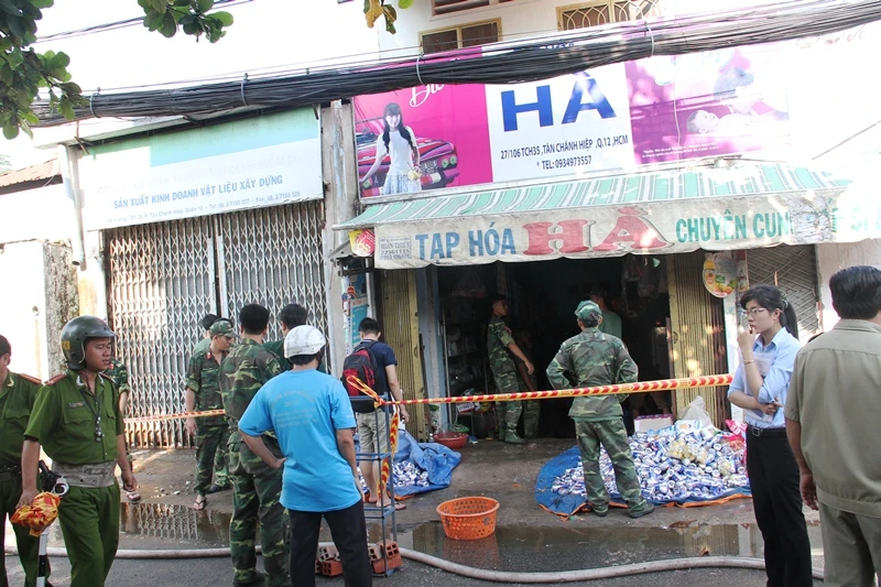 Lực lượng Cảnh sát PCCC quận 12 cùng các đơn vị phối hợp cứu hỏa đến hơn 9 giờ sáng.