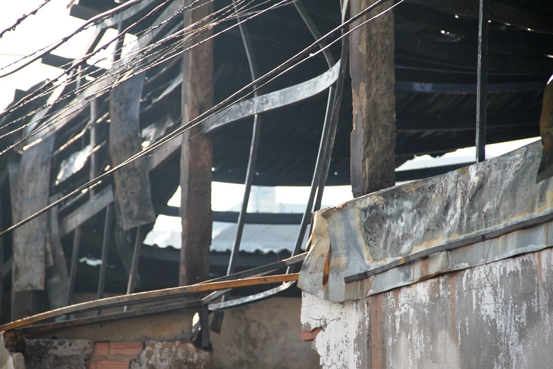 Phần mái tôn, sắt thép bị cong vênh, hư hỏng bởi sức nóng.