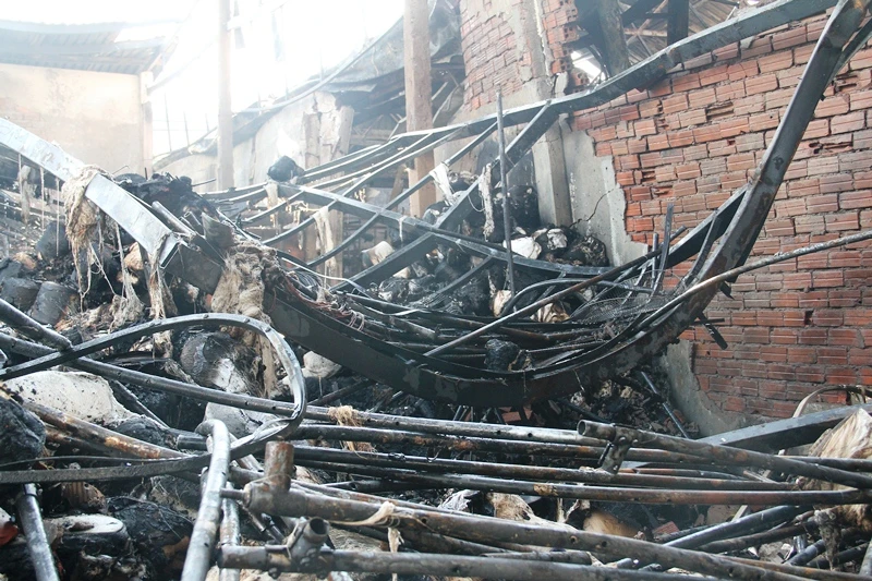 Một khối lượng lớn chỉ may đã bị thiêu rụi.