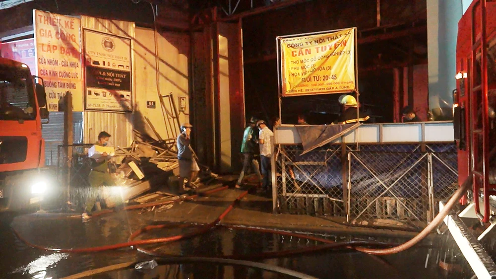 Đến rạng sáng 30-1, lực lượng chức năng quận 12, TP.HCM vẫn đang phong tỏa hiện trường, dập lửa tàn, khám nghiệm điều tra vụ cháy xưởng gỗ trên địa bàn.