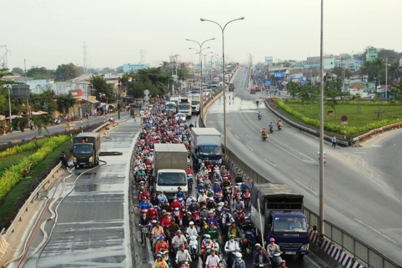 Vụ việc khiến giao thông trên một làn quốc lộ 1A bị ùn ứ nghiêm trọng.