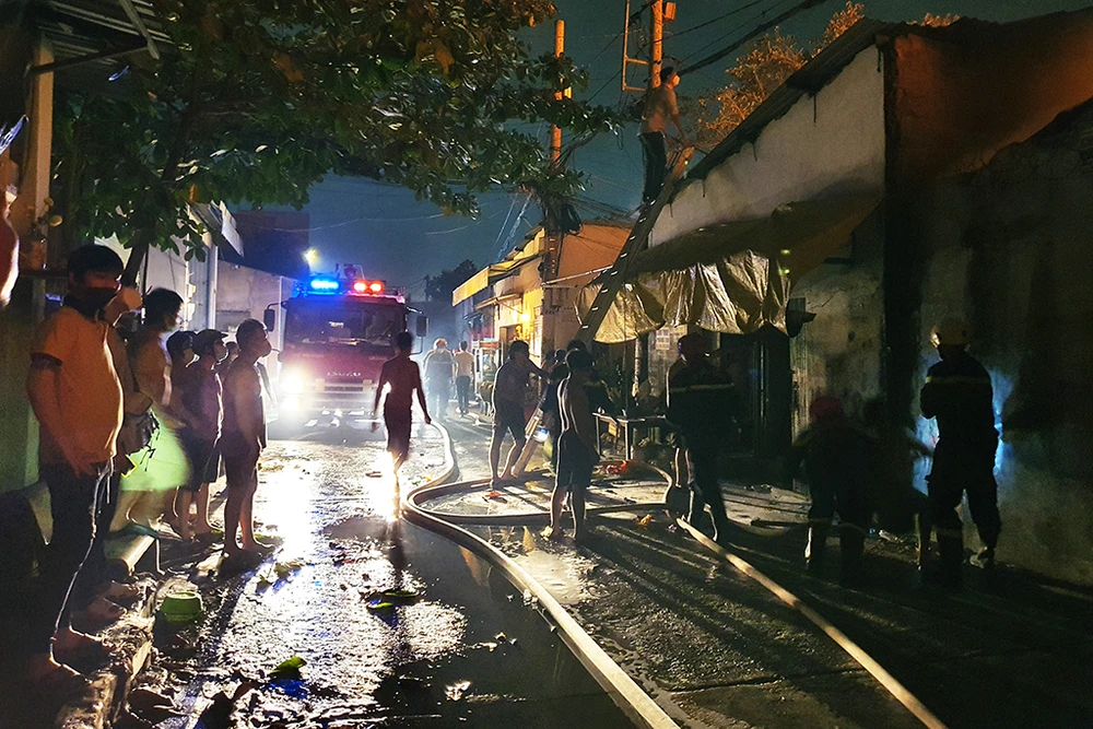Cảnh sát PCCC điều động hành chục phương tiện cùng lực lượng chuyên nghiệp chia nhiều hướng tiếp cận. Do khu vực cháy nằm trong hẻm, lửa lớn lan nhanh khiến công tác khống chế gặp khó khăn.