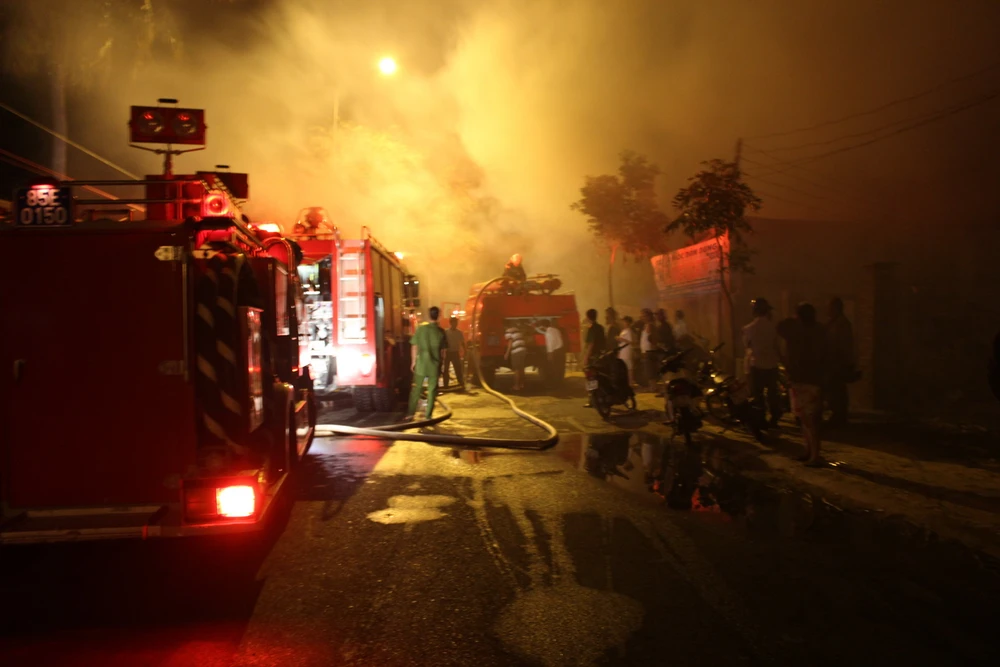 Lực lượng cứu hỏa phong tỏa hiện trường. Ảnh: Minh Trân