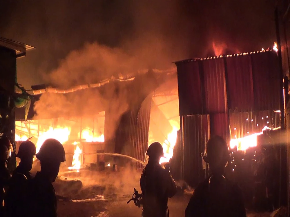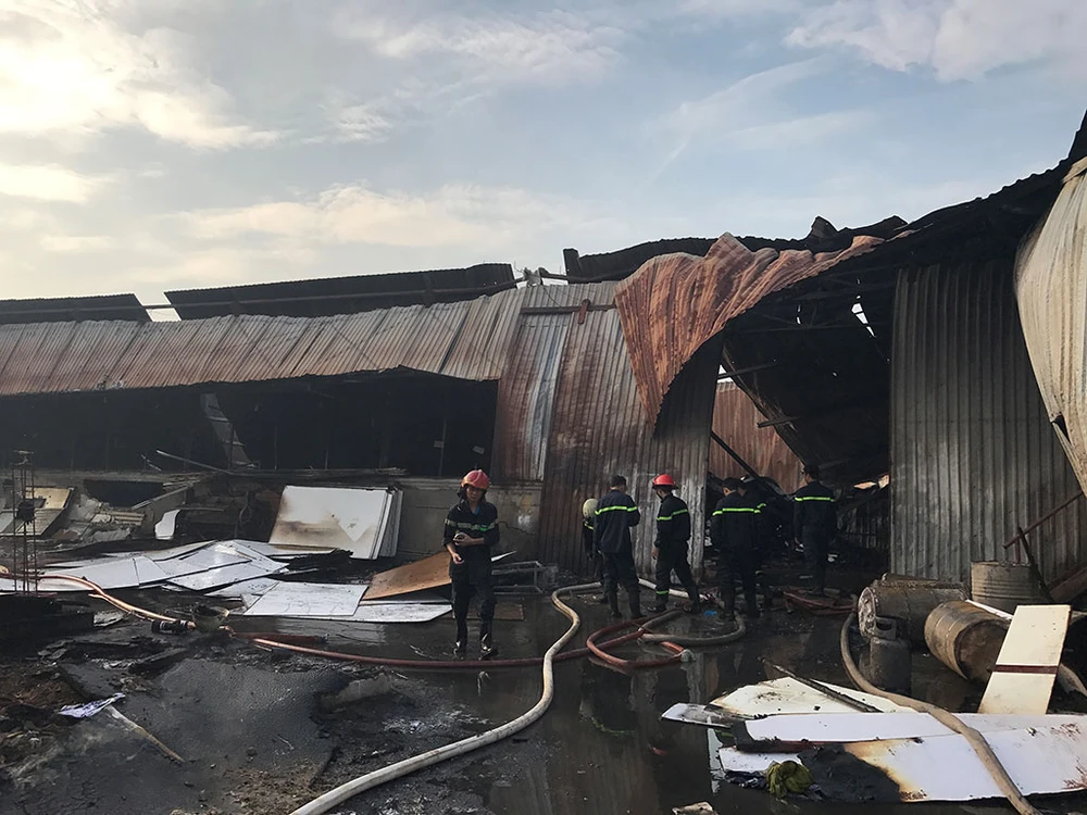 Cảnh sát PCCC đã bảo vệ được xưởng cơ khí, kho vật tư và không để cháy lan sang 10 nhà dân lân cận.