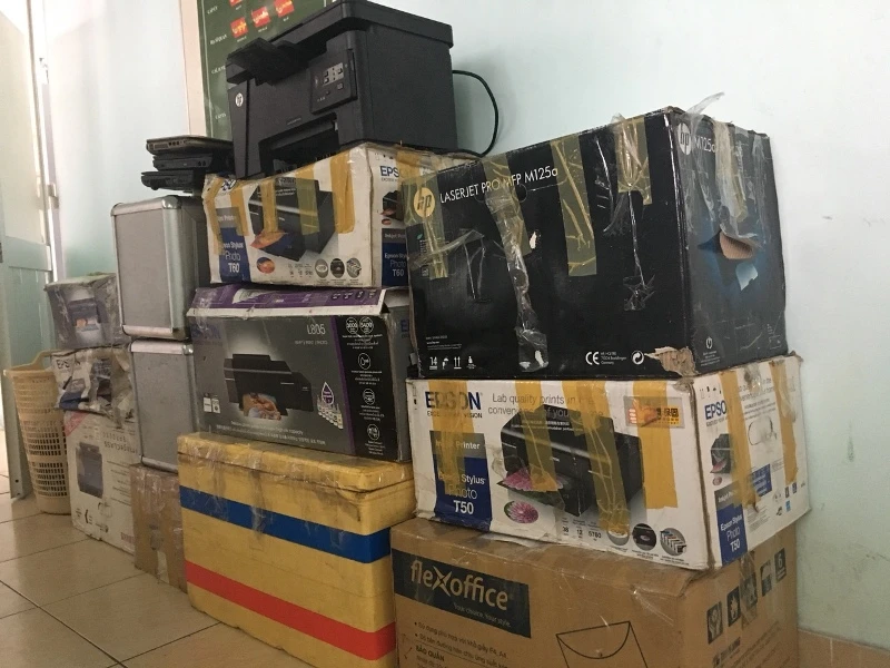 Máy móc để sản xuất giấy tờ giả công an thu giữ từ ngôi nhà trên. Ảnh: NGUYỄN TRÀ