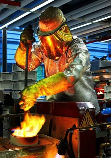 Người thợ đang làm tan chảy vàng để đúc một chiếc đồng hồ Rolex .
